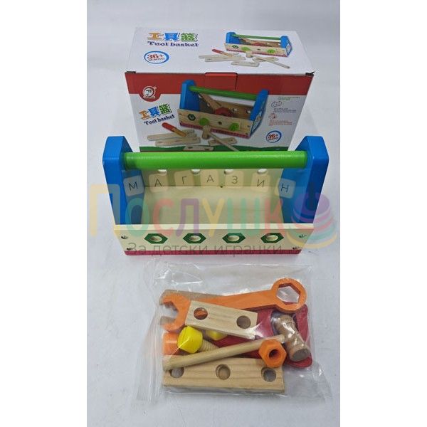 Дървен комплект с инструменти за малкия майстор, който развива логическото мислене, координацията и креативността на децата. Съдържа инструменти и части за завинтване и сглобяване, създадени специално за любознателни малчугани над 3 години.