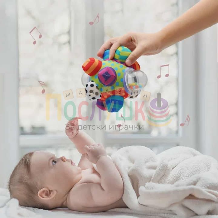 ✔️ Моторни умения – поощрява бебето да хваща, стиска и разклаща, което стимулира развитието на ръцете и мускулите.