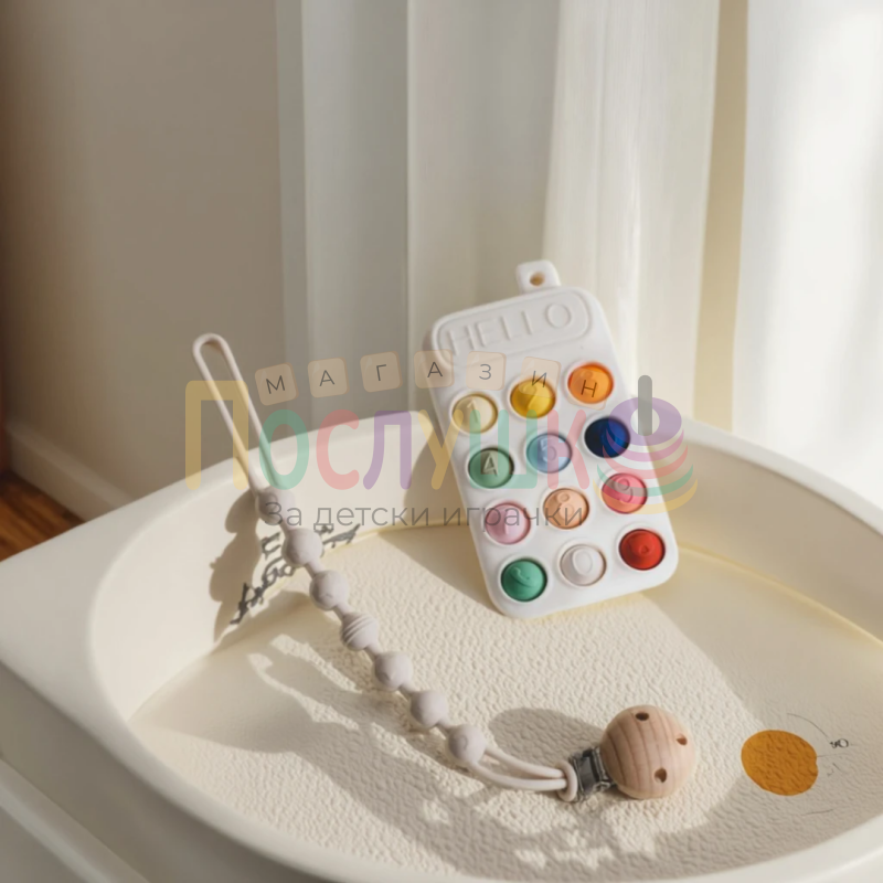 Силиконовият попит телефон за бебе е идеална играчка за никнене на зъбки и забавление. Изработен от мек силикон, той осигурява безопасно и комфортно преживяване, като същевременно стимулира развитието на сетивните умения на бебето. С интересния си дизайн, който наподобява истински мобилен телефон, той ще привлече вниманието на малките и ще ги забавлява дълго.