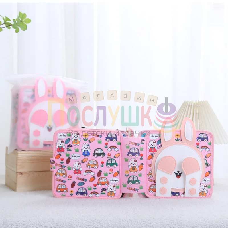 Голяма розова текстилна сензорна книжка