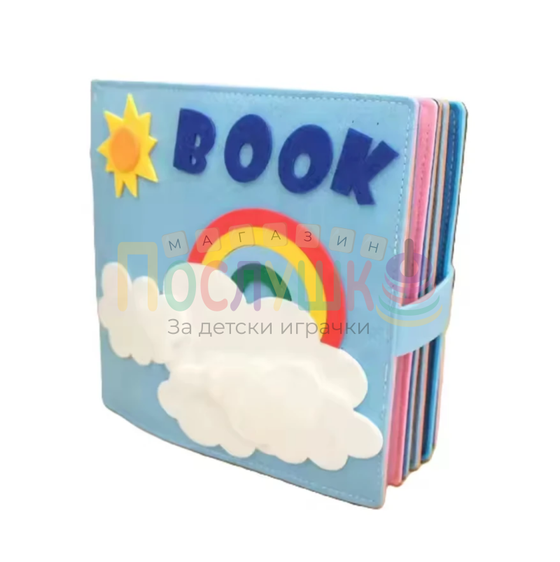 Тази сензорна текстилна книжка „Дъга“ е перфектното въведение в света на цветовете и формите. Изработена от висококачествен, мек и безопасен плат, книжката приканва бебето да опознава света чрез докосване, звуци и движение. Всяка страница съдържа различни активности – ципове, копчета, велкро елементи, връзки и шумолящи части, които стимулират любопитството и вниманието на детето.