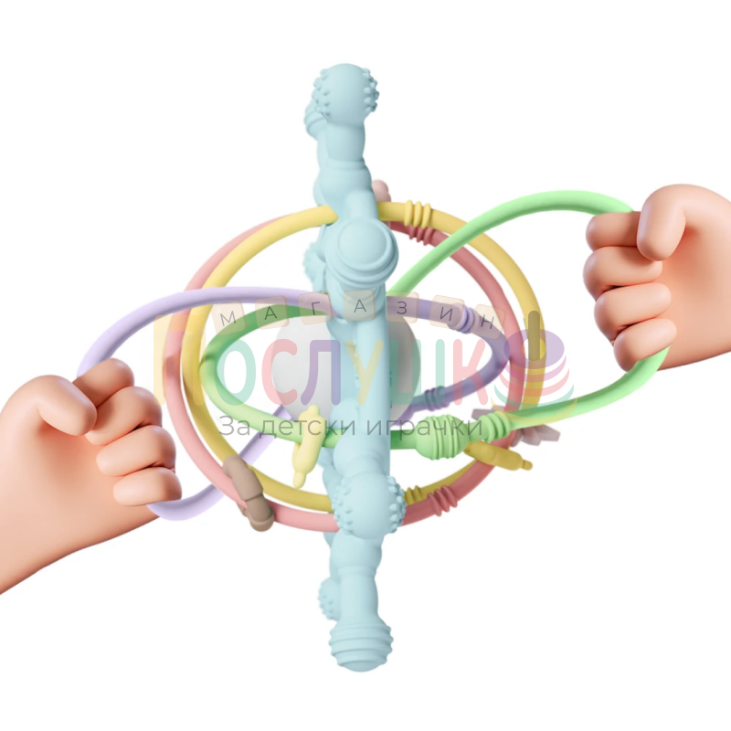 Бебешката силиконова гризалка Blue Dream е идеалният помощник при периода на никнене на зъбките. Изработена от мек и безопасен силикон, тя осигурява облекчение на венците и стимулира сетивното развитие на бебето. Перфектен баланс между комфорт, функционалност и стилен дизайн в нежни сини нюанси.