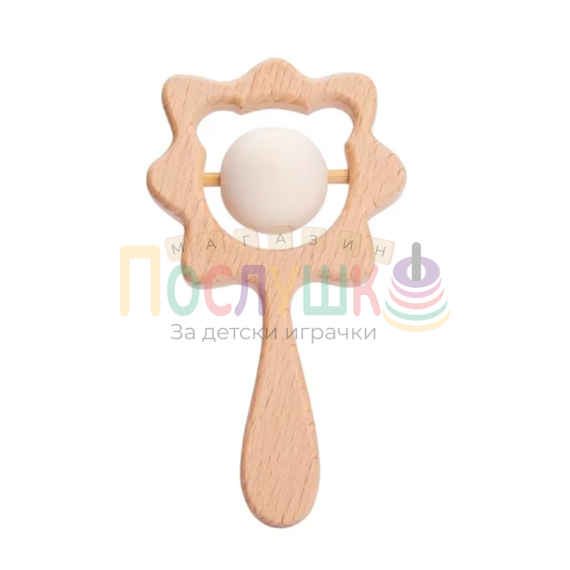 Дървена бебешка дрънкалка с топче