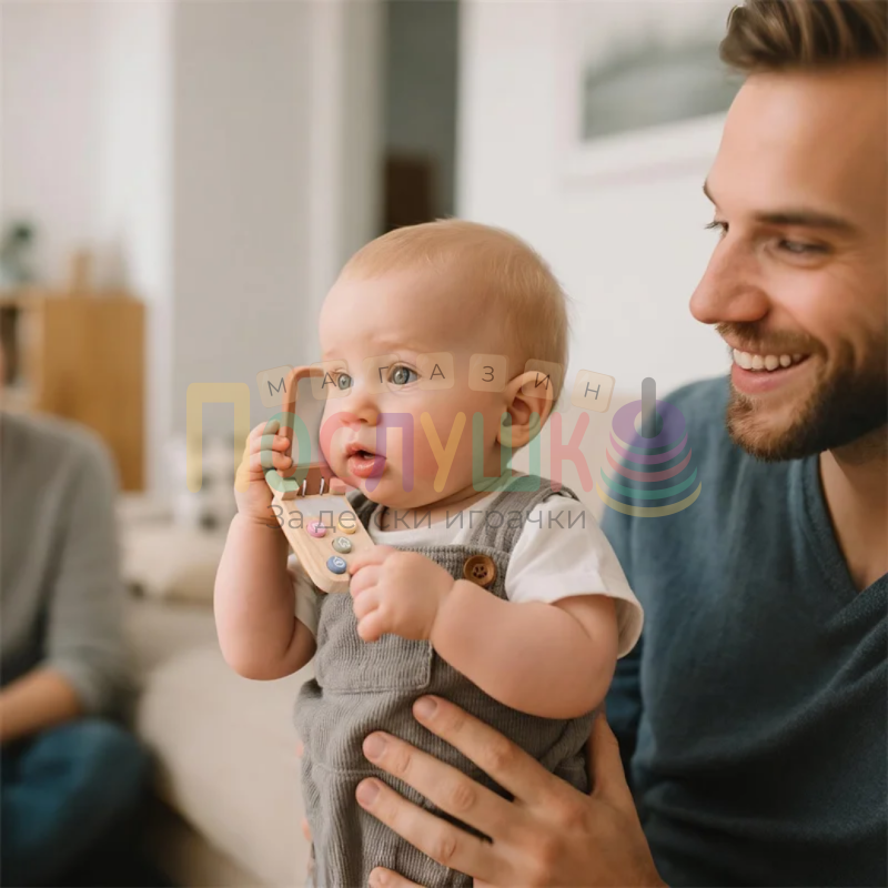 Дървен детски телефон
