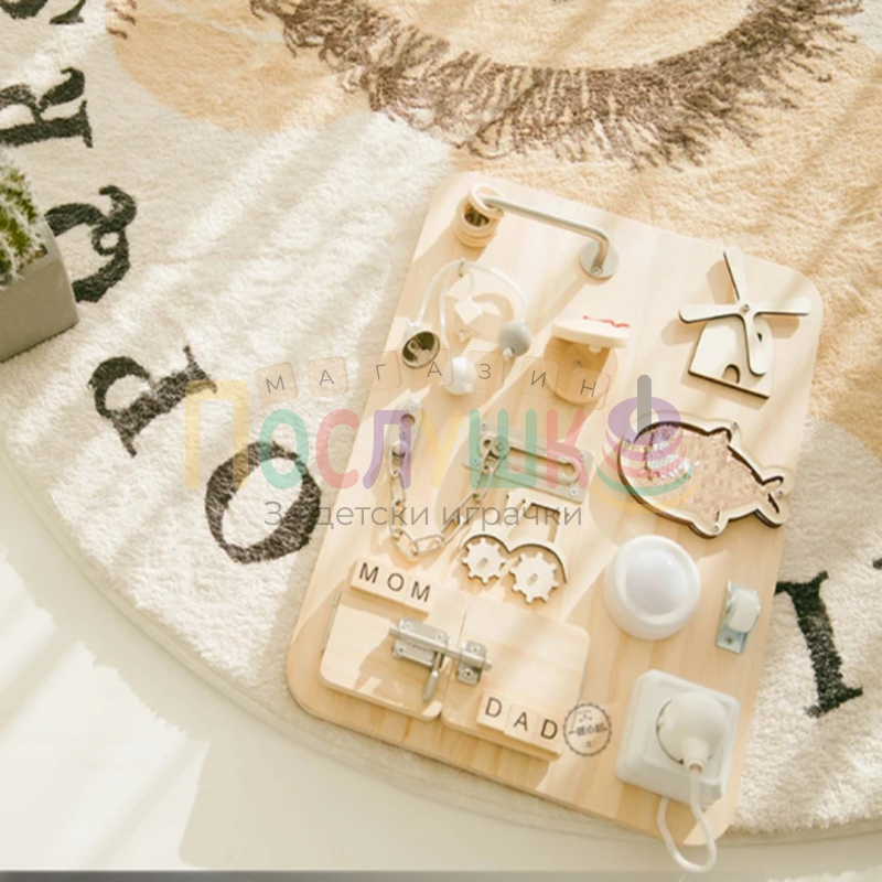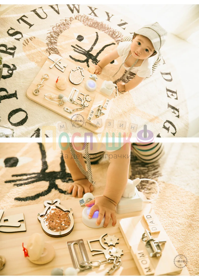 Дървена монтесори дъска с активности Busy Board
