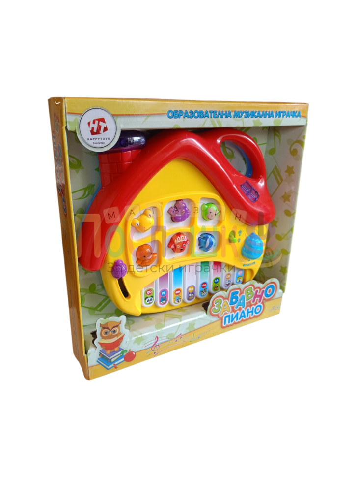 Забавната къщичка с пиано е изключително интерактивна играчка, която предлага на децата многобройни възможности за учене и забавление. С помощта на 14 популярни български песнички и четири режима на игра, децата ще могат да се учат, да свирят и да отговарят на забавни въпроси. Тази играчка е създадена така, че да комбинира обучение и забавление, като същевременно развива моторните и когнитивни умения на малките.